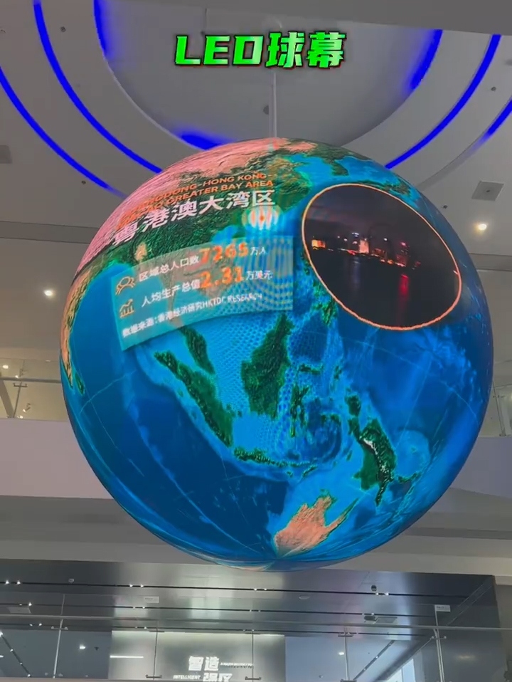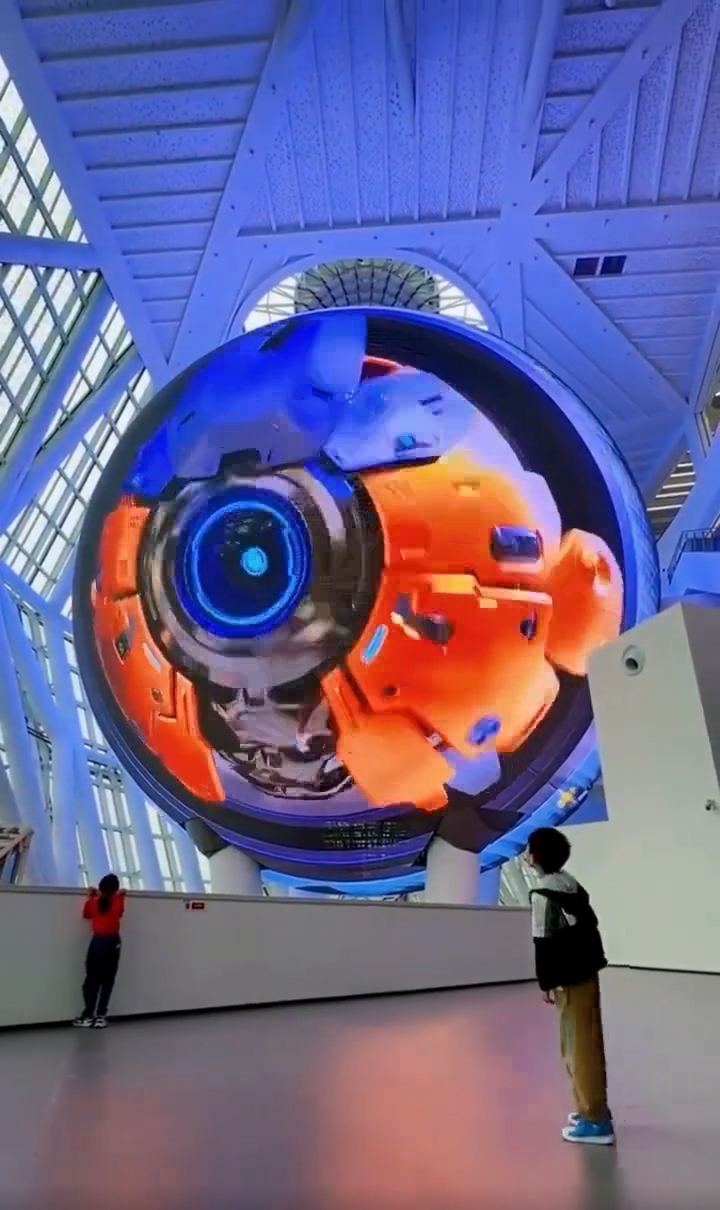 裸眼 3D 效果强:球形显示屏契合裸眼 3D 呈现,其曲面结构提供全方位视角,使画面立体纵深效果逼真,为观众带来沉浸式视觉体验。